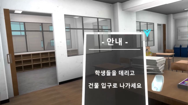 나아가 대한안전교육협회는 교사용, 학생용으로 나누어 VR 콘텐츠를 제작했는데요, 이로써 교사 및 지도자도 유사시에 학생들을 안전하게 대피시키는 훈련을 손쉽게 할 수 있습니다.